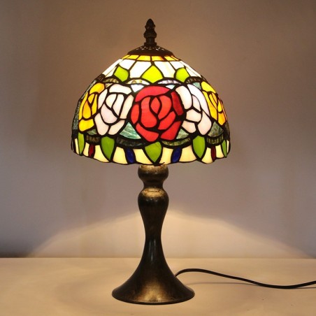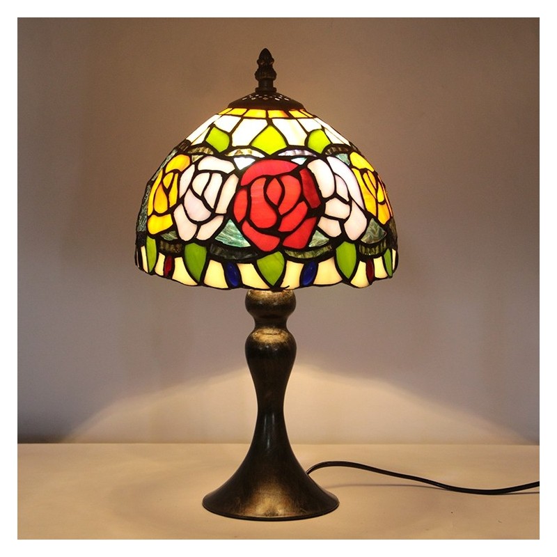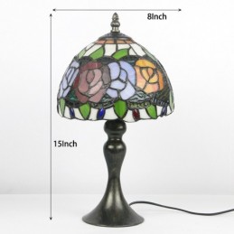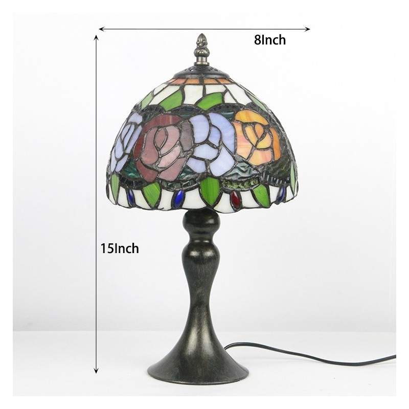 Lumină de birou în stil vitraliu Tiffany cu lampă de masă cu lampă de lectură cu trandafir roșu L8H15 inch